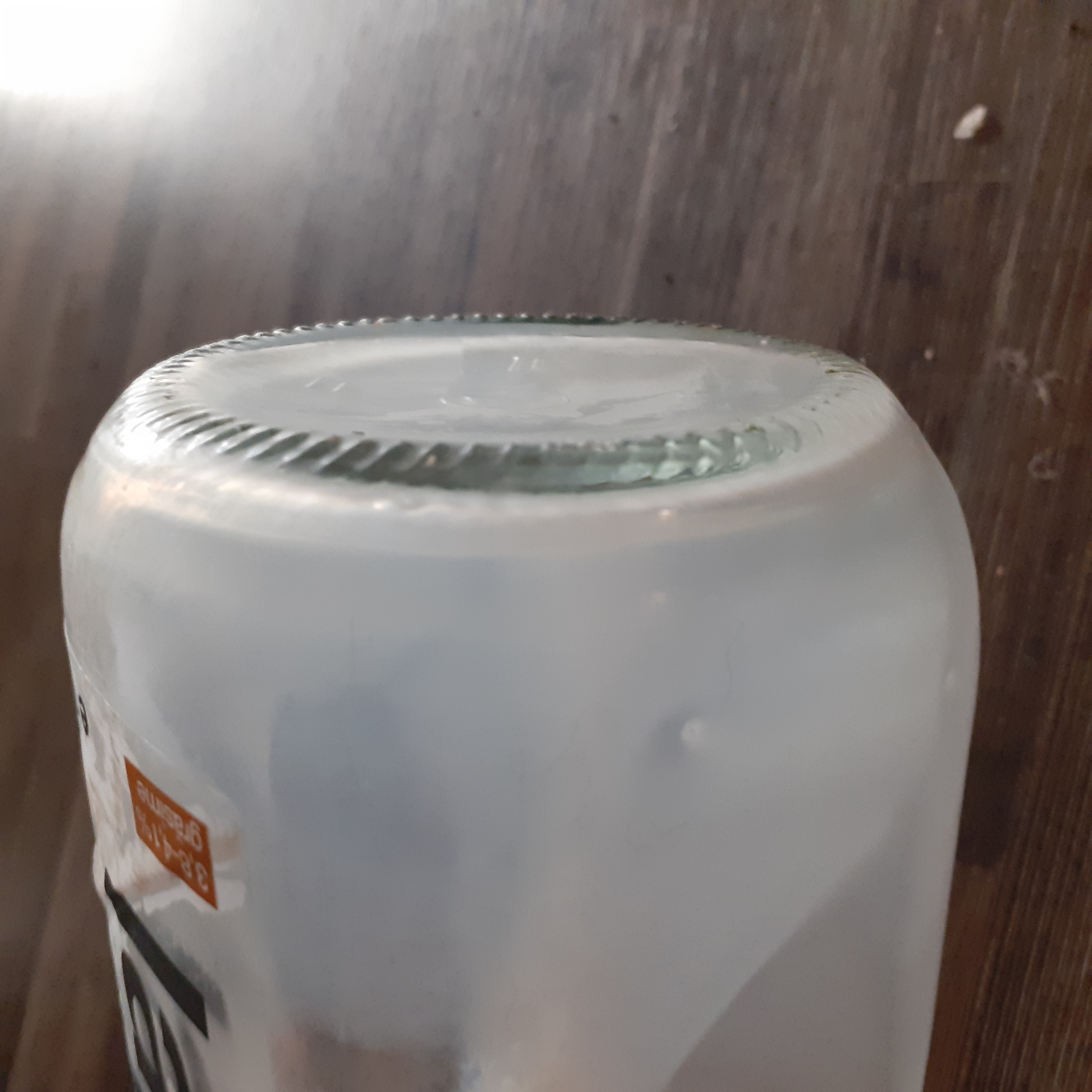 Contains objects: clear glass bottle