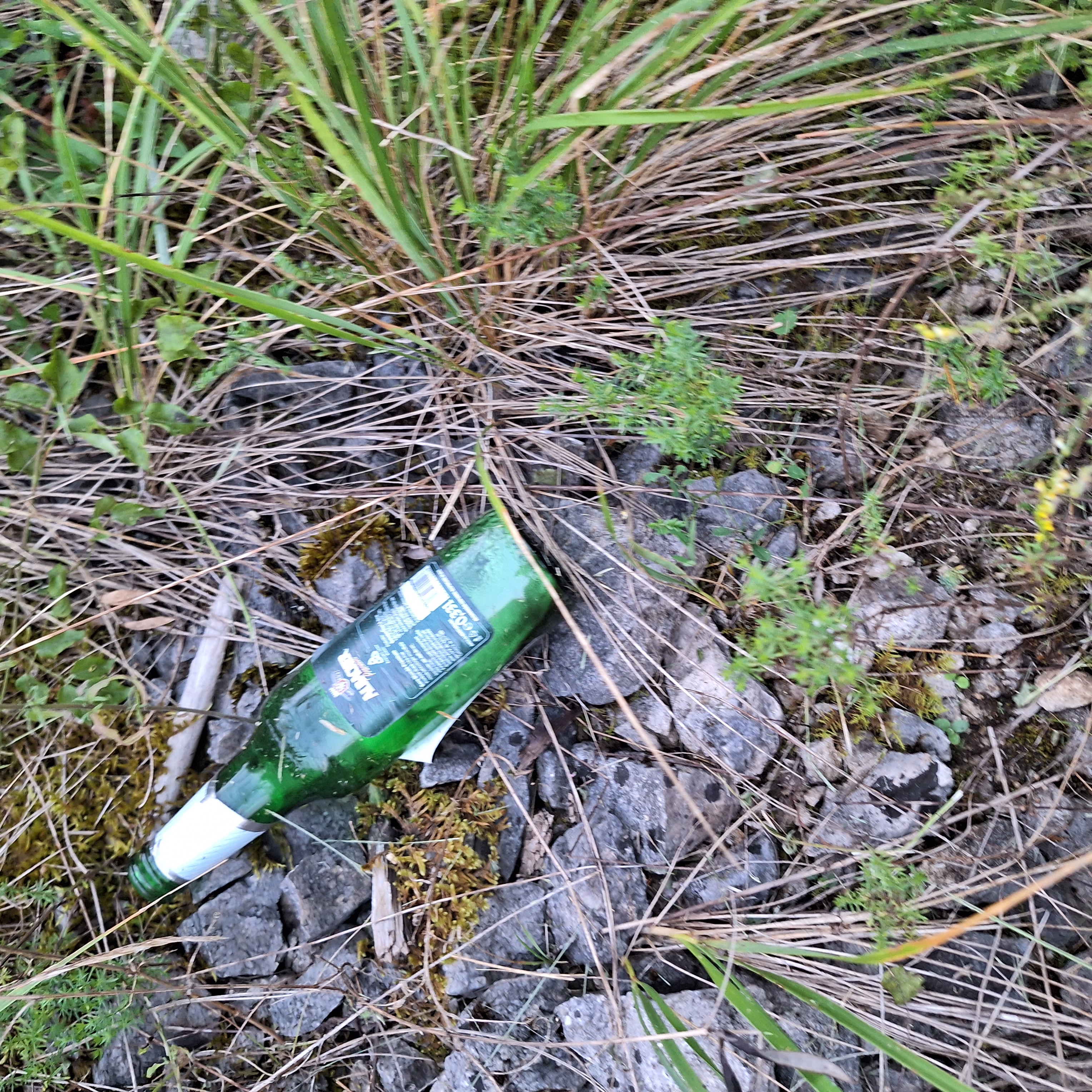 Contains objects: green glass bottle