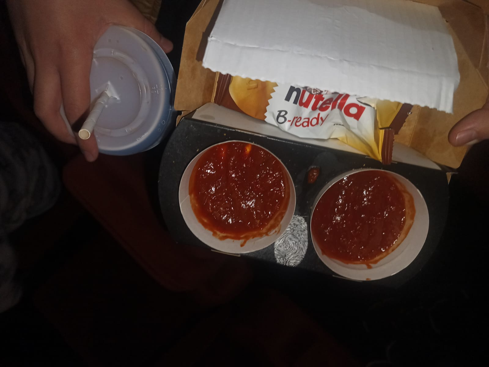 Contains objects: cardboard household waste, clear PP cup, food waste, paper cup, paper straw, plastic pouch