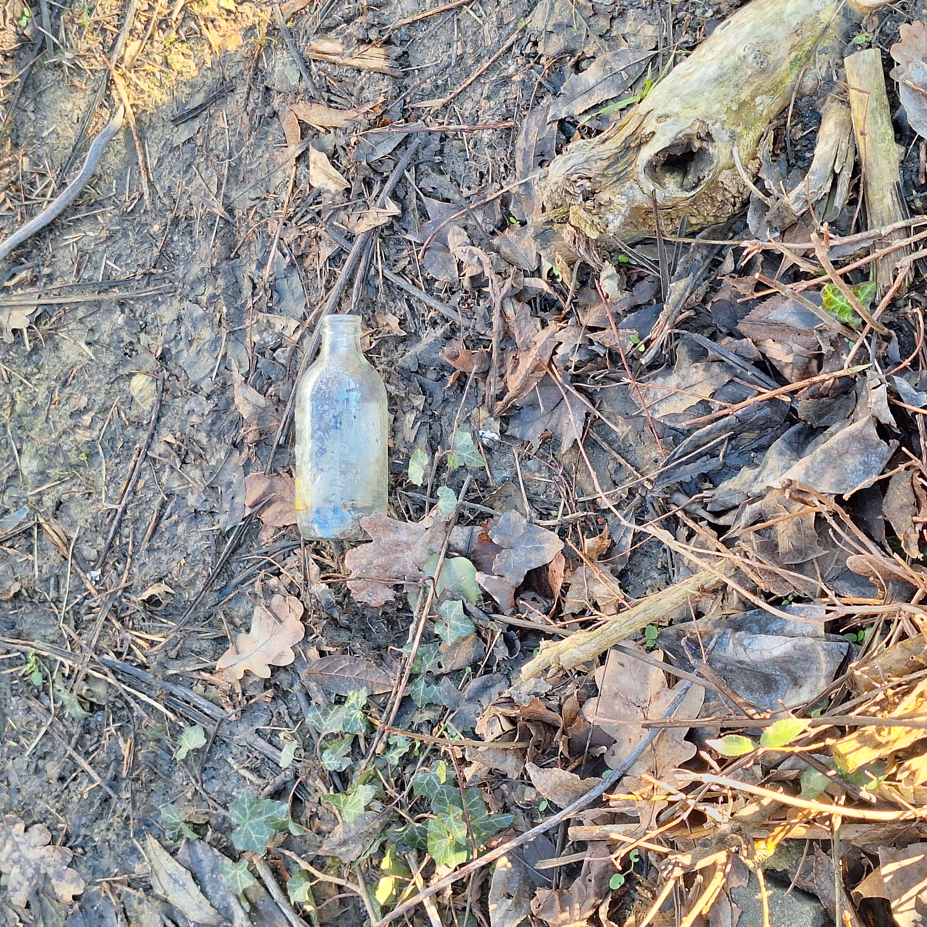 Contains objects: clear glass bottle