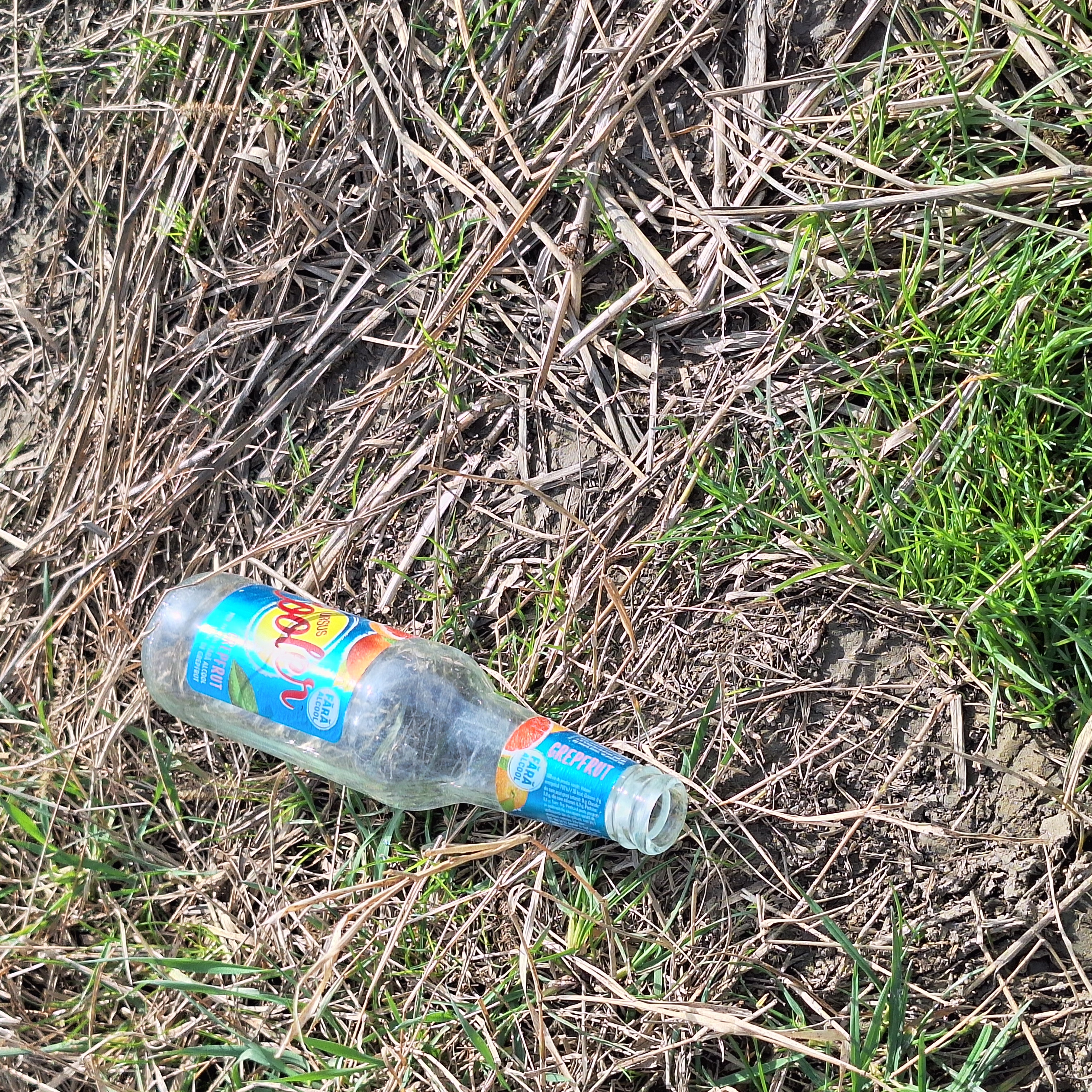 Contains objects: clear glass bottle