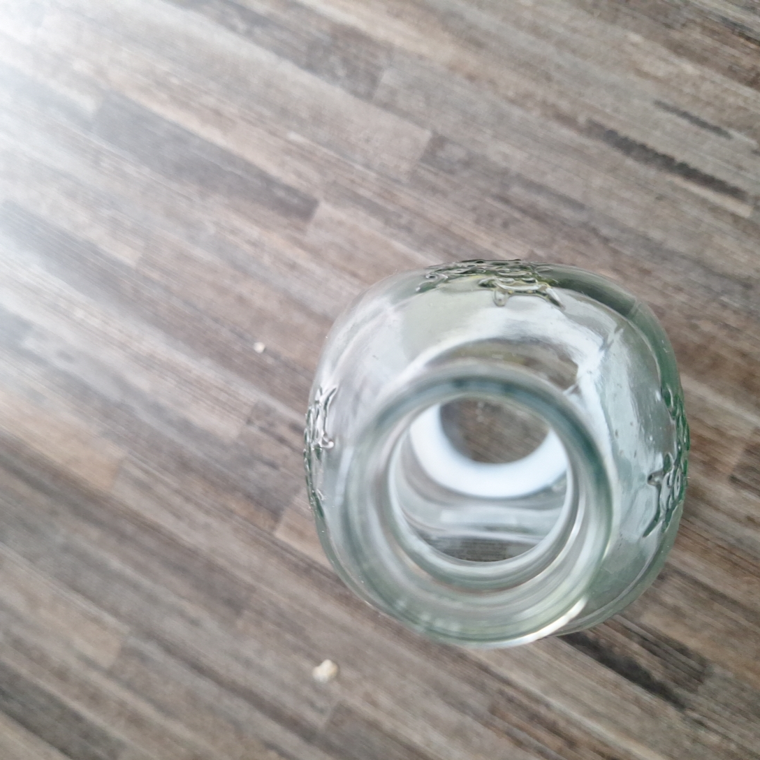 Contains objects: clear glass bottle