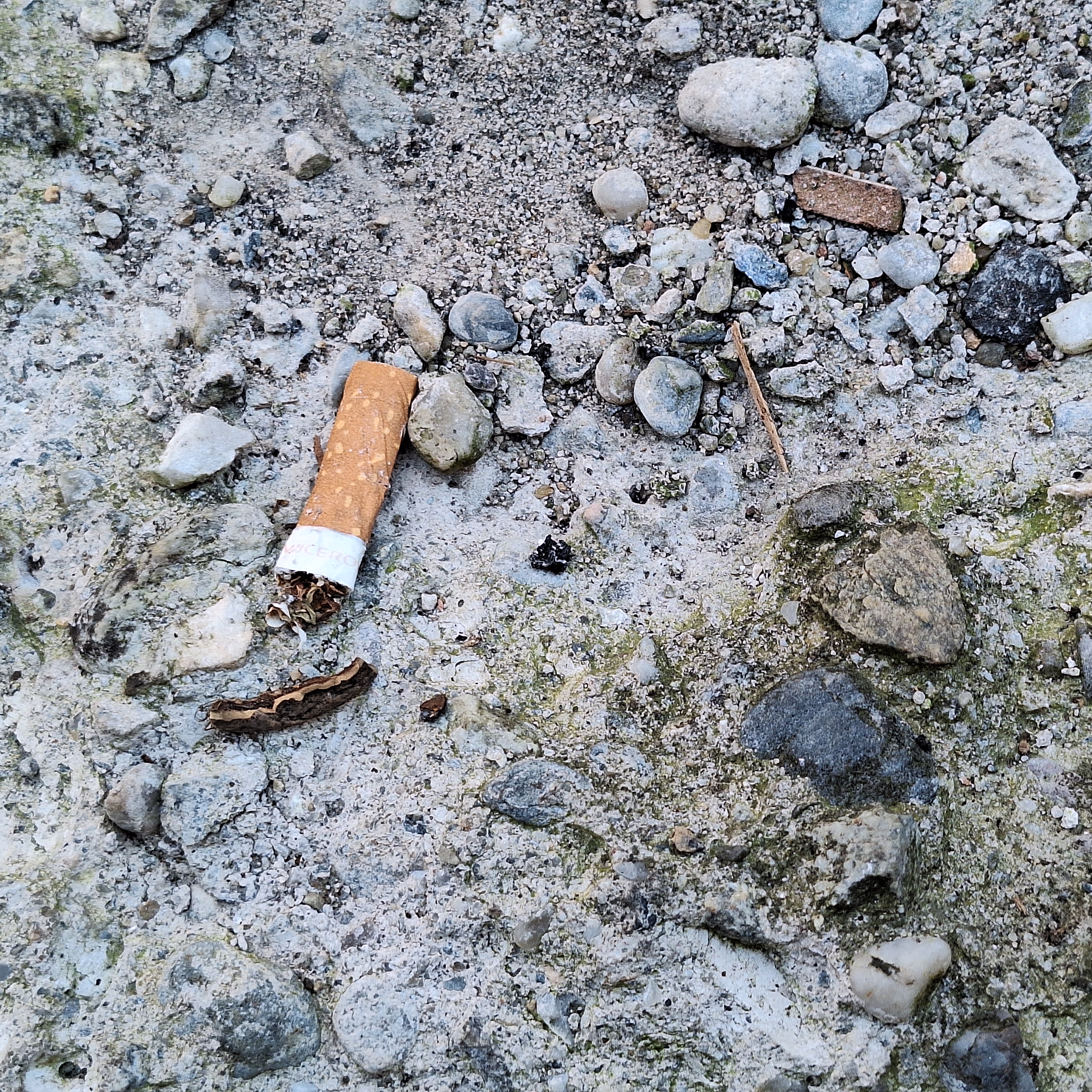 Contains objects: cigarette butt